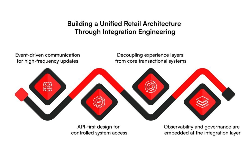 A unified retail architecture is not about replacing systems, it is about coordinating them. Integration engineering focuses on how data flows, how events propagate, and how systems remain loosely coupled while working together.